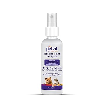 Petvit Tick Repellent Oil Spray With Coconut Oil Tea Tree Oil Eucalyptus Oil Oatmeal Lemon Grass Oil For All Breed Dog Cat 100 Ml Amazon In Pet Supplies